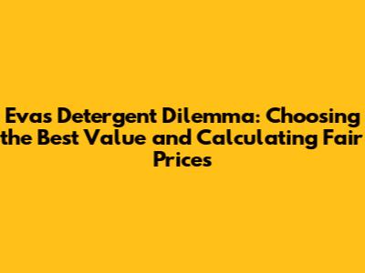 Navigating the world of household products can sometimes feel like solving a complex math problem, especially when you're trying to snag the best deal. Ever found yourself staring at a shelf full of detergents, scratching your head, wondering which one gives you the most bang for your buck? Well, you're not alone! In this article, we're diving deep into Eva's detergent dilemma, exploring how to calculate fair prices and make smart, value-driven choices. We will break down the mathematics behind comparing different sizes, concentrations, and prices, making sure you leave with the confidence to conquer your next shopping trip. So, grab your calculators, guys, because we're about to turn your laundry day decisions into a mathematical adventure!